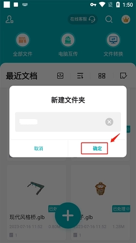 2、弹出“新建文件夹”窗口,输入文件夹名称并点击“确定”即可;