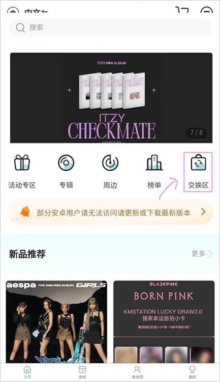 1、首先在首页的功能区选择“交换区”