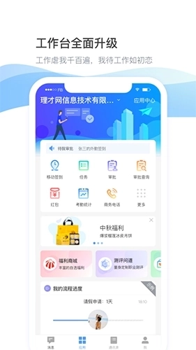提供审批、汇报、公告、请假、报销、出差等OA功能,满足企业日常办公需求,各种申请提交、审批全部在线一体化流程,告别东奔西跑的传统审批步骤。