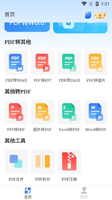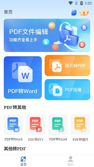 1、打开软件后在首页点击“PDF转Word”功能,进入专属转换界面,确保待转换PDF文件已保存至设备本地。