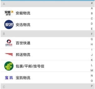 用户可以通过快递的首字母进行查看,这样能更快捷地找到并查询相关信息。