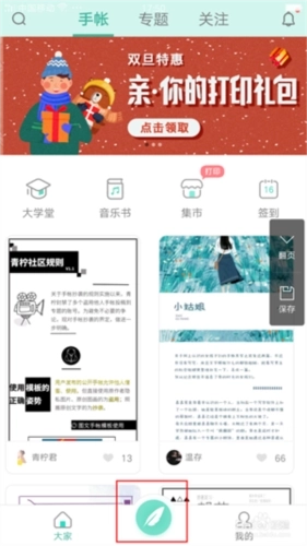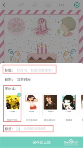 手帐完成后,点击右上角保存,填写好标题、日期、手帐本和投稿专题等信息。一篇手帐就完成啦。