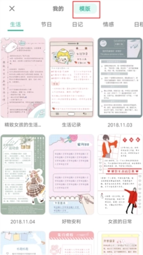 可以看到「我的」和「模板」,「我的」里保存的是自己创作的模板,新手可以先在「模板」中选择已有的模板,都是免费的噢。