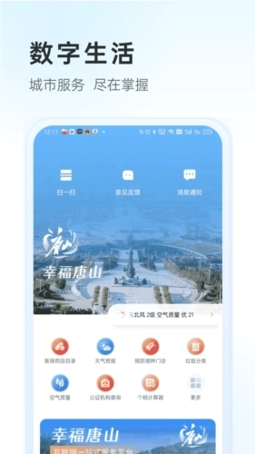 作为唐山城市服务总入口,涵盖民生保障、医疗健康、便民服务、文体教育、生活缴费、交通旅游等与市民生活、工作息息相关的各类服务,