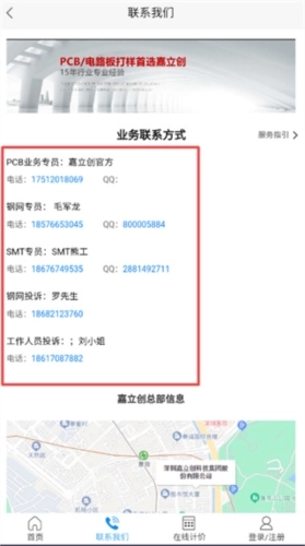 2、点击“联系我们”,可以进行业务联系,这里有着相关人员的联系方式;