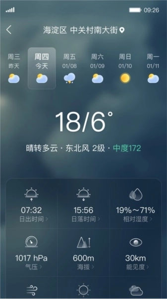 3、本地天气快速查询,实时定位之后自动显示本地天气。