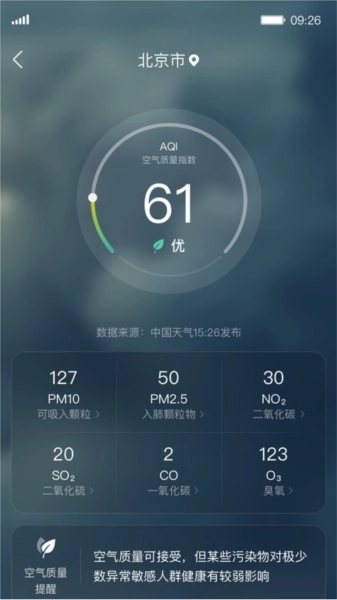 5、点击空气质量,能够了解实时的空气情况,得到优质的服务