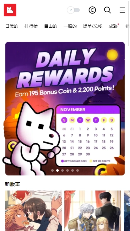 3、在Lezhin漫画主页,大屏幕可炫酷展示作品。