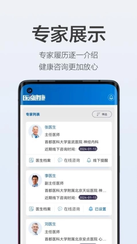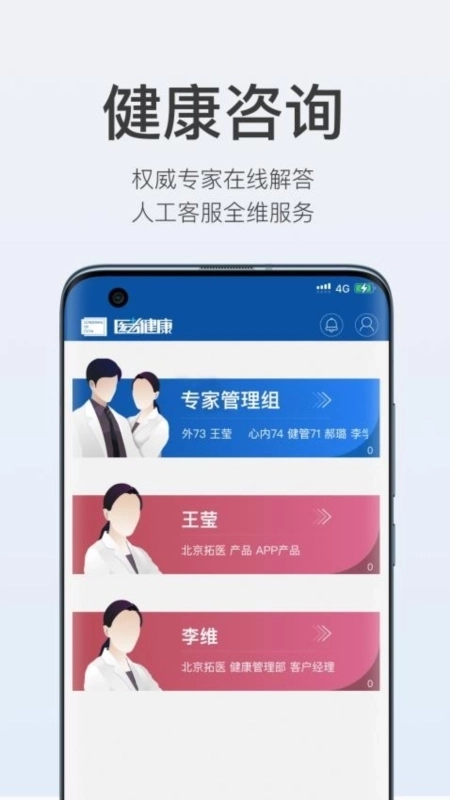 医者健康是北京拓医医疗科技服务有限公司开发的一款对接国内顶级心脑血管医疗团队的健康管理软件。软件以心脑血管慢病管理为核心,真确实现顶级专家健康管理,维护您的心脑系统健康。用户通过软件可以预约挂号看病,在线和医生进行一对一咨询,让你更好的了解自己的身体情况。软件可以对用户的健康进行实时的管理,根据用户的身体数据指标来制定出合理的管理方案,用户可以在线进行定时监管关键指标,轻松的对用户的健康进行用药指导,助力用户健康的进行生活。里面还有用户病例报告的专项分析,方便用户可以清晰的进行查看,并使用里面的营养膳食方案,轻松的降低自己的疾病风险,有需要的用户欢迎使用!