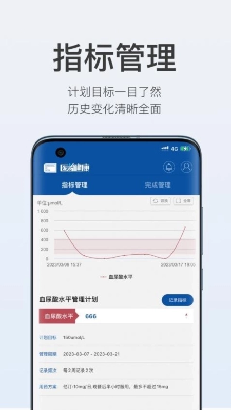 【关键指标管理】医者健康围绕客户关键指标出具定制化管理方案,根据管理方案定时监管关键指标,指标异常提醒以及用药指导。结合运动和营养方案,多维度控制关键指标的健康发展。