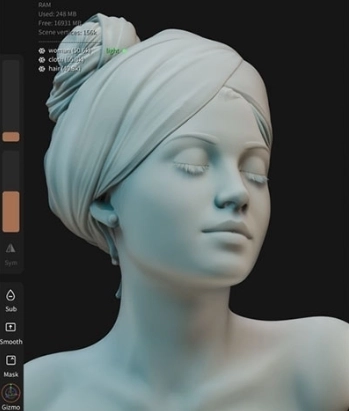 1、丰富的雕刻工具类型:包含标准、平滑、充气、移动、拉伸/推、修剪、平坦化、折痕以及旋转工具。