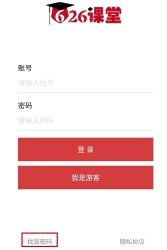 626课堂怎么找回密码?该软件中若是忘记登录密码了,可以直接找回密码。