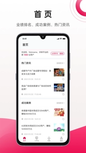 拼媒pp是成都新潮传媒集团有限公司开发的一款移动互联时代的广告销售软件,通过在新潮传媒大平台上进行资源共享,将所有广告客户信息进行分层次、体系化集中呈现在拼媒App中,并为合伙人提供共享客户的搜索、查看、管理等服务工具。合伙人可通过报备客户、维护客户、客户协作、客户成交等不同角色分工及个人贡献度来获取相应收益。是一款打破传统广告销售模式,实现新型广告合作盈利机制的。