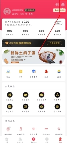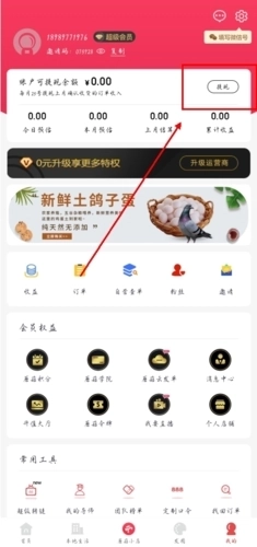 1、第一步先打开并进入【我的】页面,接着找到右上角的【提现】选项并点击进入;
