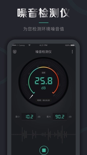 检测实时噪音:随手打开即可对此时此刻这个环境的噪音分贝进行检测;