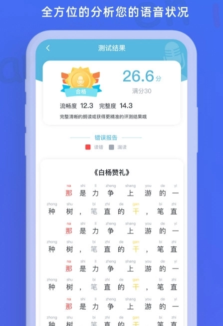 3、自动判定发音准确度和语音质量,解决考生最烦恼的口音问题。