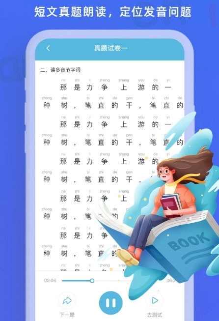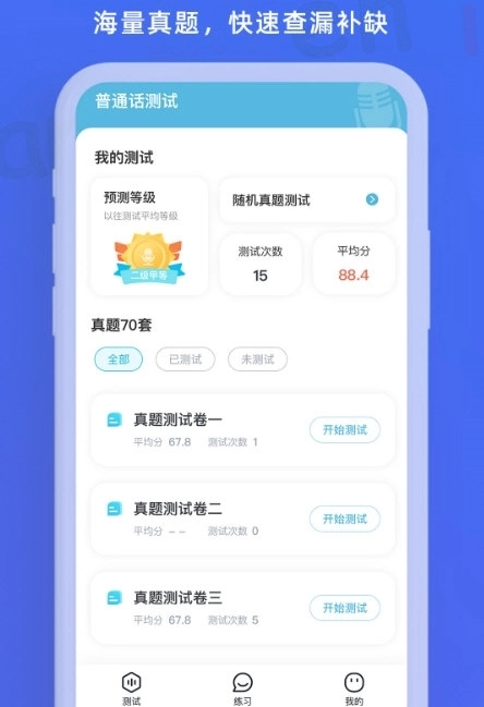 3、海量真题模拟与随机真题测试:这款提供了大量的普通话真题模拟,以便您在正式考试前进行练习。此外,随机抽取的真题测试也让学习过程更富挑战性,帮助您在各种不同的场景下熟悉考试内容。