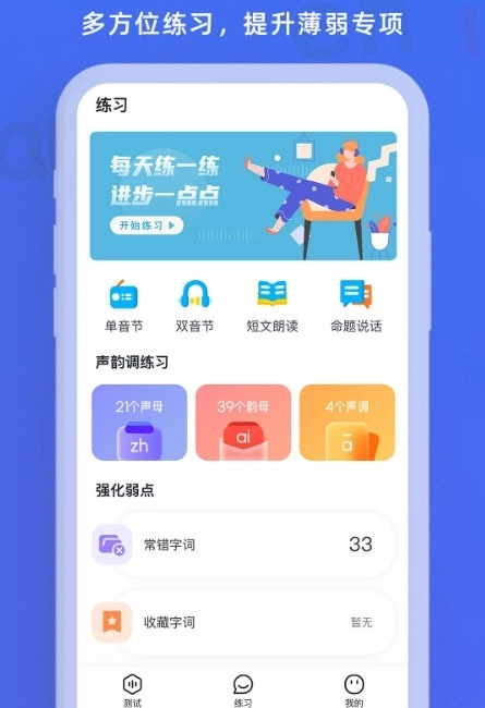 5、针对性学习:对于初学者,提供了单音节、多音节、短文朗读、命题说话等功能,帮助您逐步提升普通话水平。这些功能的设计,考虑到了普通话学习的不同阶段,使得学习过程更具系统性和针对性。