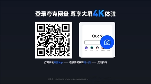 1、在本站并安装夸克网盘tv版后,初次使用需要使用已登录账号的设备扫描屏幕上的二维码