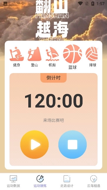 2、进入首页点击开始运动选择运动类型,软件自动启动数据监测功能。