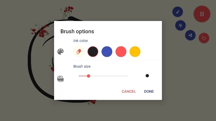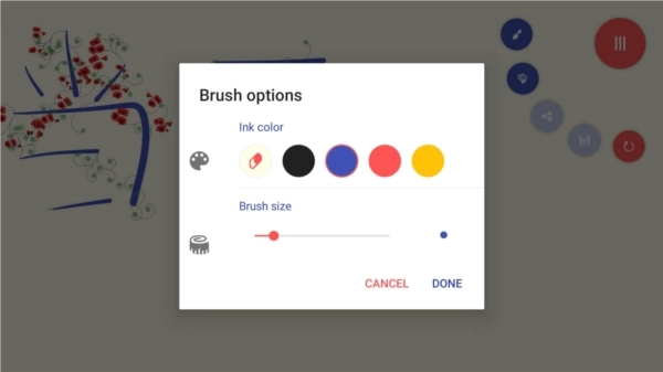 选择笔刷:滑动调节笔刷大小,点击墨色图标切换颜色与浓度。