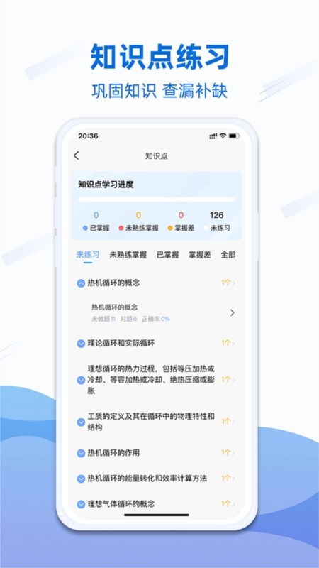 4、功能强大跟踪学习:顺序练习、模拟考试、我的错题、我的收藏等功能助阵学习