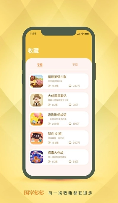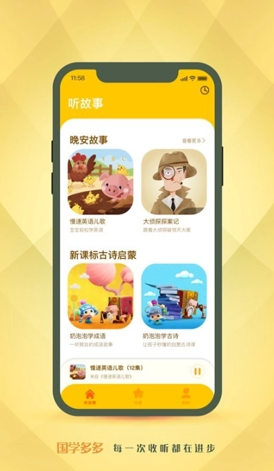 10.儿歌歌谣:软件中也包含了许多有趣的儿歌和歌谣,通过音乐的形式,帮助孩子记忆和理解国学经典的内容。