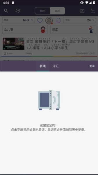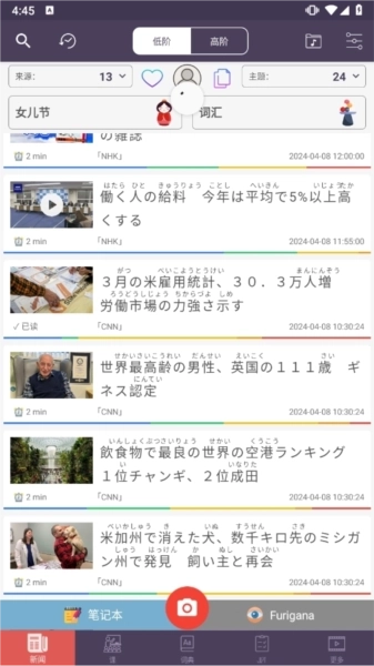 除了低阶的简单新闻之外,您还可以尝试阅读更高难度的高阶新闻。