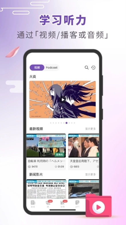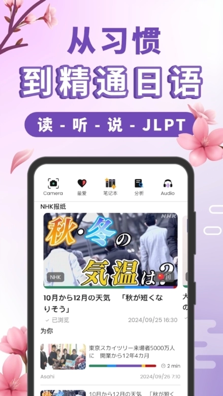 EasyJapanese是你学习日语的好助手,让您阅读,聆听和观看由NHKNEWSWEBEASY,CNN,MBC,想要需要日语,日语环境很重要,所以这个应用提供权威的每日日语新闻,让你通过阅读新闻的方式学习日语。阅读内容分为低阶和高阶的阅读模式,适用于不同情况的学习者,在阅读的同时你还可以将词汇加入生词本,还有全文日语朗读和翻译,让你更好的阅读日语文章。你还可以将文章到本地离线观看,让你随时随地学习日语。EasyJapanese里面还包含JLPTN5N1的考试准备,有完整的答案和详细解释,这个应用程序拥有一个包含31076篇文章,173386个词汇,6355个汉字,169736个例子和超过2000个语法的庞大数据库,将帮助您掌握日语。