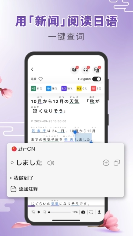 阅读带有完整插件的新闻:隐藏假名,突出文章中的重要单词,按JLPT级别强调词汇,分析文章的语法结构,更改字体大小。