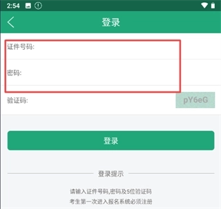 6、输入证件号码、密码、验证码,登录网上报名系统。