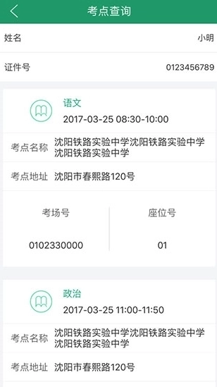 对于考试的考点进行查询,不用担心不知道去哪里考试问题发生
