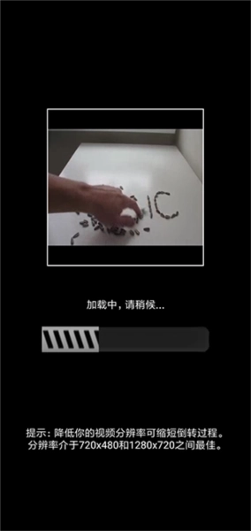 4、倒转视频正在制作,请耐心等待,提示:降低你的视频分辨率可缩短倒转过程。分辨率介于720x480和1280x720之间最佳。