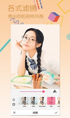 4、提供50+实时滤镜,还会有多样滤镜,拍照前即可预览效果,超级的实用。