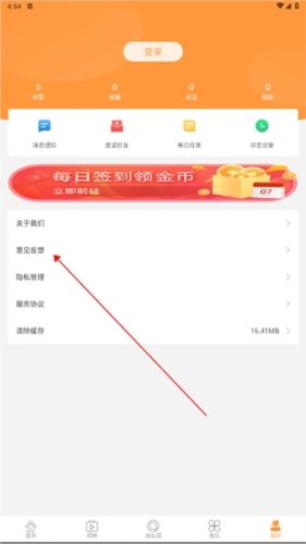 2、在我的界面内,找到并点击“意见反馈”;
