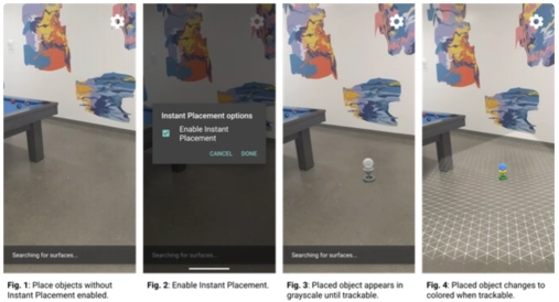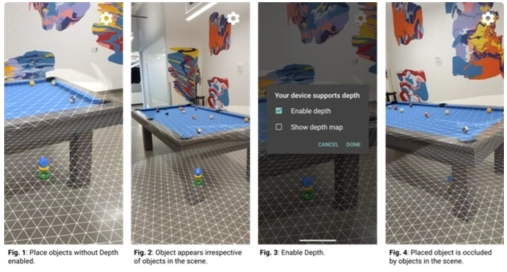 使用手机的传感器和相机,ARCore可以准确感知手机的位置和姿态,并进而改变显示的虚拟物体的位置和姿态。
