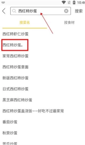 2、在搜索栏中输入你想学习的菜谱(西红柿炒蛋)