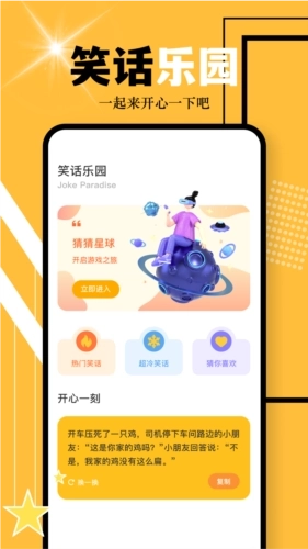 【笑话乐园】收集了了各种火爆、潮流、新鲜的各类笑话大集,让你笑不停,带给您无穷的乐趣;