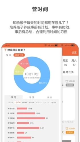 【管时间】注重孩子如何规划好每天的时间安排?知晓自己每天的时间都用在哪儿了?让孩子养成事前有计划(制定每日学习、专注任务计划),事中有时效(设置任务完成时效),事后有总结(用时间数据来了解孩子)合理利用时间的习惯。
