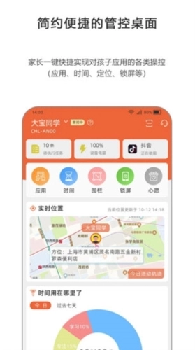 6、应用管控:可以对孩子安装的应用进行管控,限制各个手机应用的使用时间