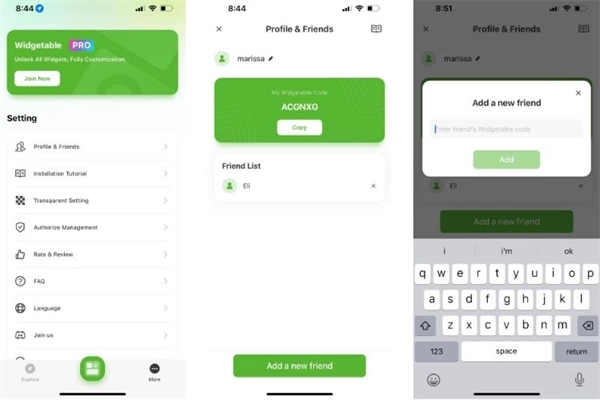 4、便捷社交连接:安装后在“更多”-“个人资料和好友”界面输入代码即可添加好友,轻松共享锁屏小部件,提升社交互动的便捷性。