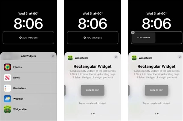 设置小部件后,你可以转到锁定屏幕,按住屏幕,然后点击自定义。点击添加小部件并查看矩形小部件是否出现在菜单中。