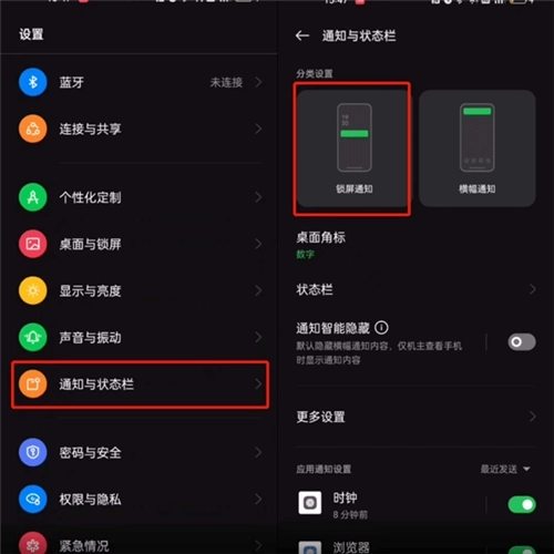 1、手机打开【设置】,点击【通知与状态栏】,进入页面设置,点击【锁屏通知】,查看锁屏通知是否打开。