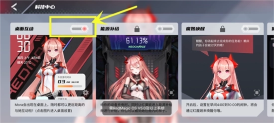 1、需要通过互动的方式提升好感度,在主界面点击红魔姬的任意位置可以触发不同的效果,同时能看到左侧的好感度在提升。