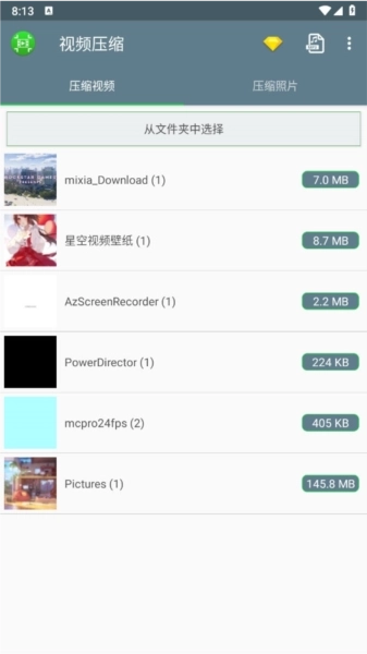 选择一个要压缩的视频或者图片文件。