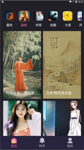 这里拥有非常丰富的铃声资源,还有很多的主题壁纸等可以来设置,非常的方便,同时,拥有炫酷多样的来电视频和铃声秀,让你彻底告别单调乏味的系统来电提示音,并且都是免费提供给大家设为来电提醒,还支持自制的酷超酷来电秀视频,让来电更炫酷。