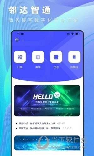 在软件中提供有门禁、电梯、快递、派样机等多种功能可供用户使用,用户可以通过动态加密的二维码来实现门禁的通行使用,让用户能够自由通行商务楼宇,还可以通过智能化服务来让用户可直接使用手机来实现对电梯的控制使用,在手机上选择到所要到达的楼层来控制使用,还能在线使用到智能化的快递服务,让用户可轻松实现快递的寄取使用,还可以帮助商务楼宇运营部门提高对商务楼宇运营管理的高效率