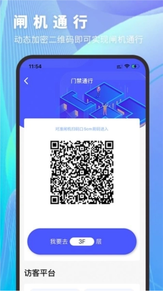 提供有商务楼宇门禁通行的服务功能,可以通过二维码来刷码通行使用。