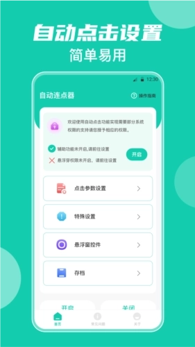 帮助广大安卓用户解放双手,实现短时间内快手连续点击加速,轻松设置点击频率;一键录制,自动重复操作,轻松实现按键精灵的效果!