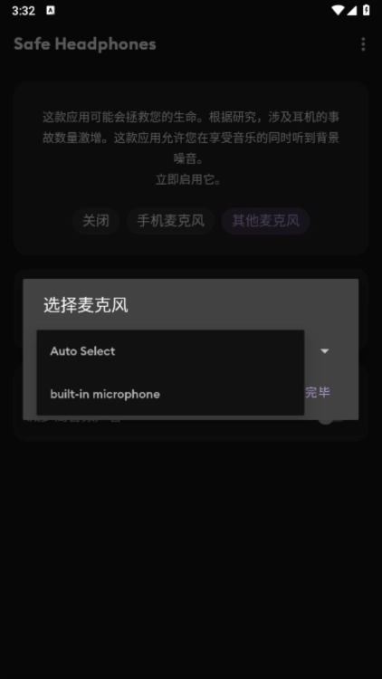 降噪与通透模式:该应用通过软件算法将普通耳机升级为主动降噪设备,但需注意: